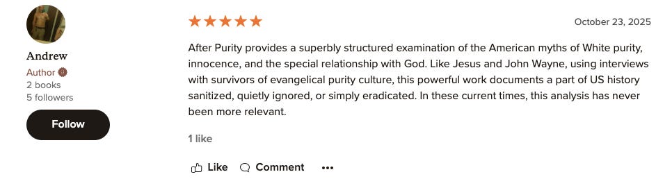 For this reason I am grateful for Mihee’s article which so expertly uses the After Purity argument to pinpoint the ways that tropes of femininity and race are being deployed to promote White Christian nationalism. Be sure to give it a careful read.